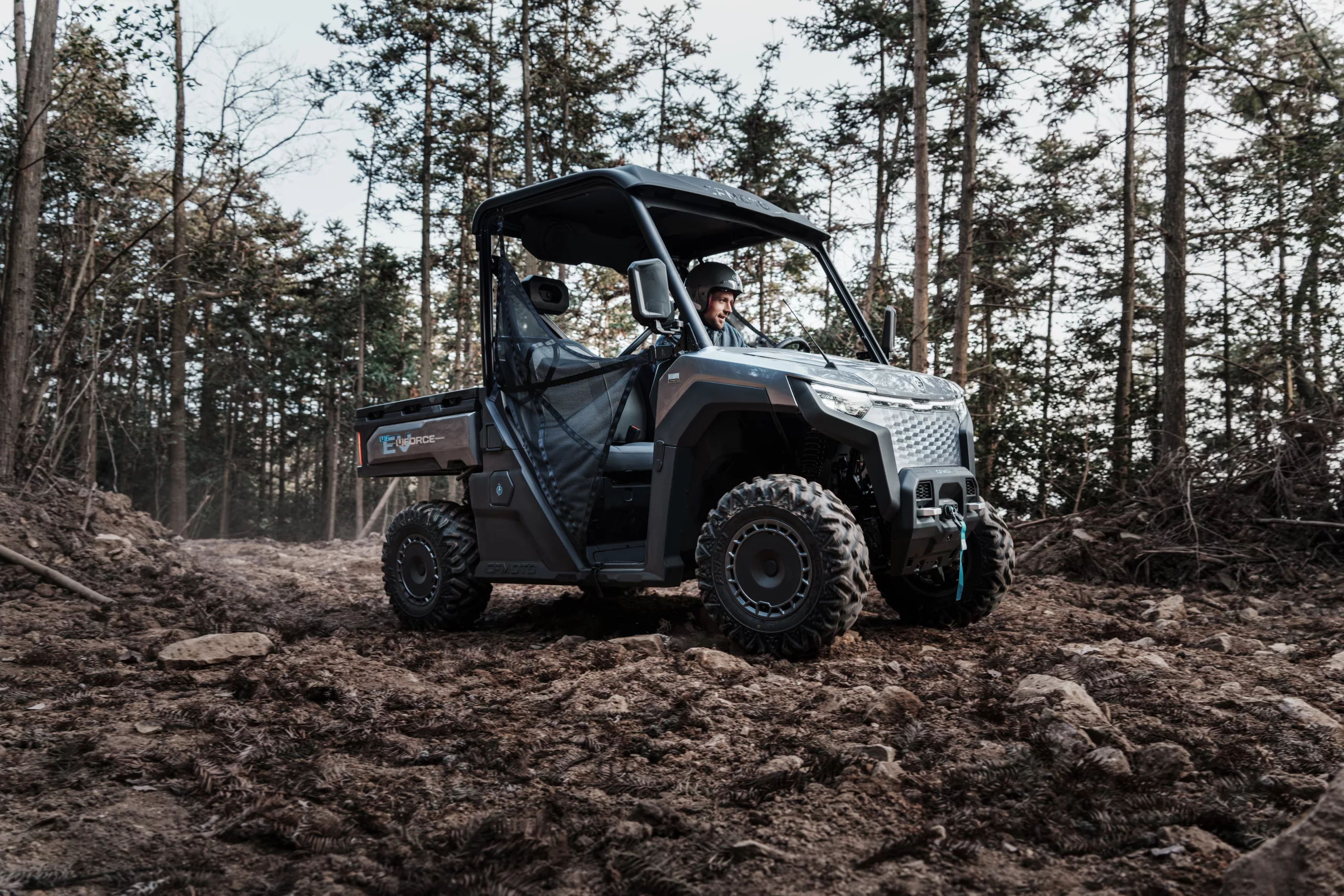 De UForce EV Offroad is volledig gericht op terreinrijden. De grote offroad-banden leveren maximale grip op modderige, zanderige en rotsachtige ondergrond. Met een trekvermogen van 800 kg en een laadvermogen van 460 kg blijft de Offroad-versie ook geschikt voor lichte werk- en transporttaken. Standaard is deze versie uitgerust met een sterke lier, trekhaak met kogel en een robuust onderstel, zodat u in elke situatie voorbereid bent.