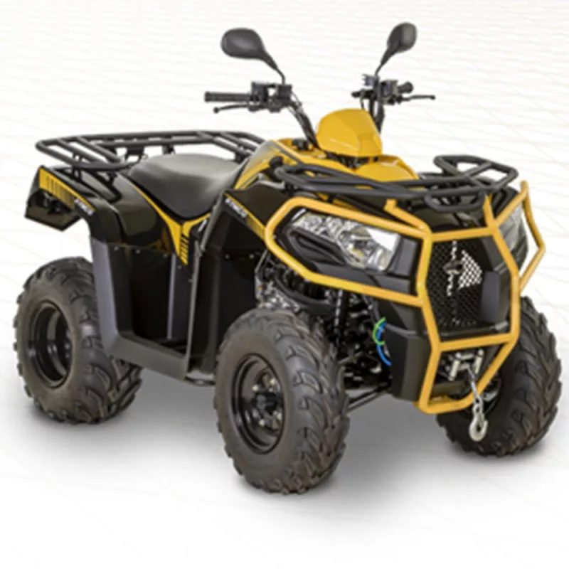 Deze quad is standaard uitgerust met bagagedragers aan de voor- en achterzijde, een cardanaandrijving,