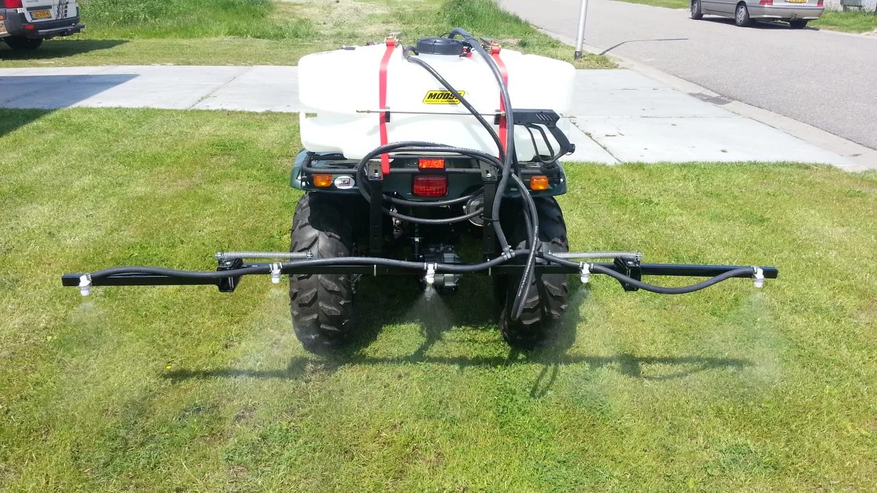 Betreft spuittank 95lt. 14,4 lpm en spuitboom 5 spuitdoppen.