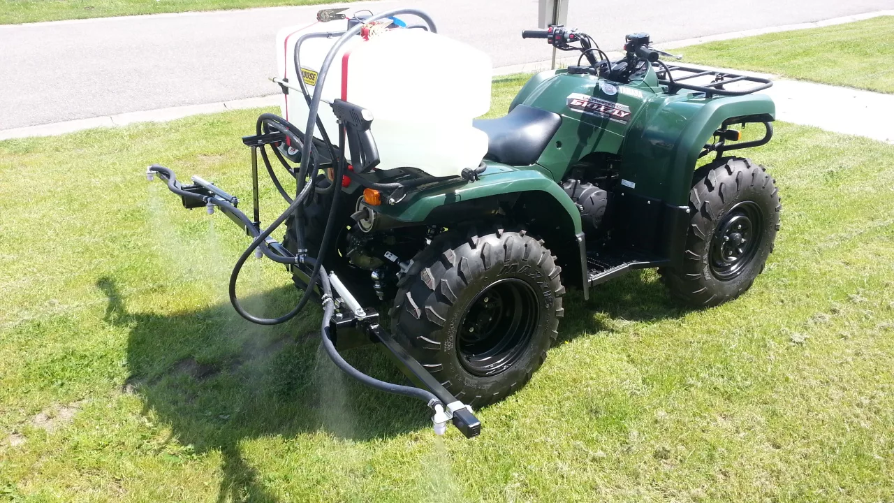 De onkruidspuit voor quad werkt op 12v voeding. Als de pomp word ingeschakeld word deze op ingestelde druk gebracht. Als de gewenste druk bereikt is schakelt de pomp automatisch af en schakelt weer in als de druk zakt door inknijpen van handpistool.